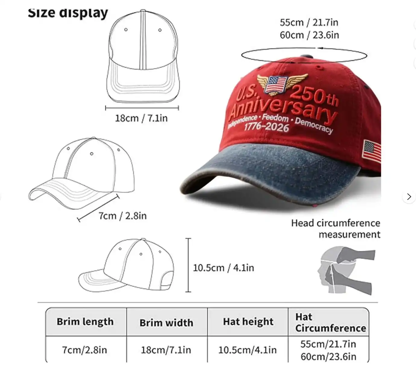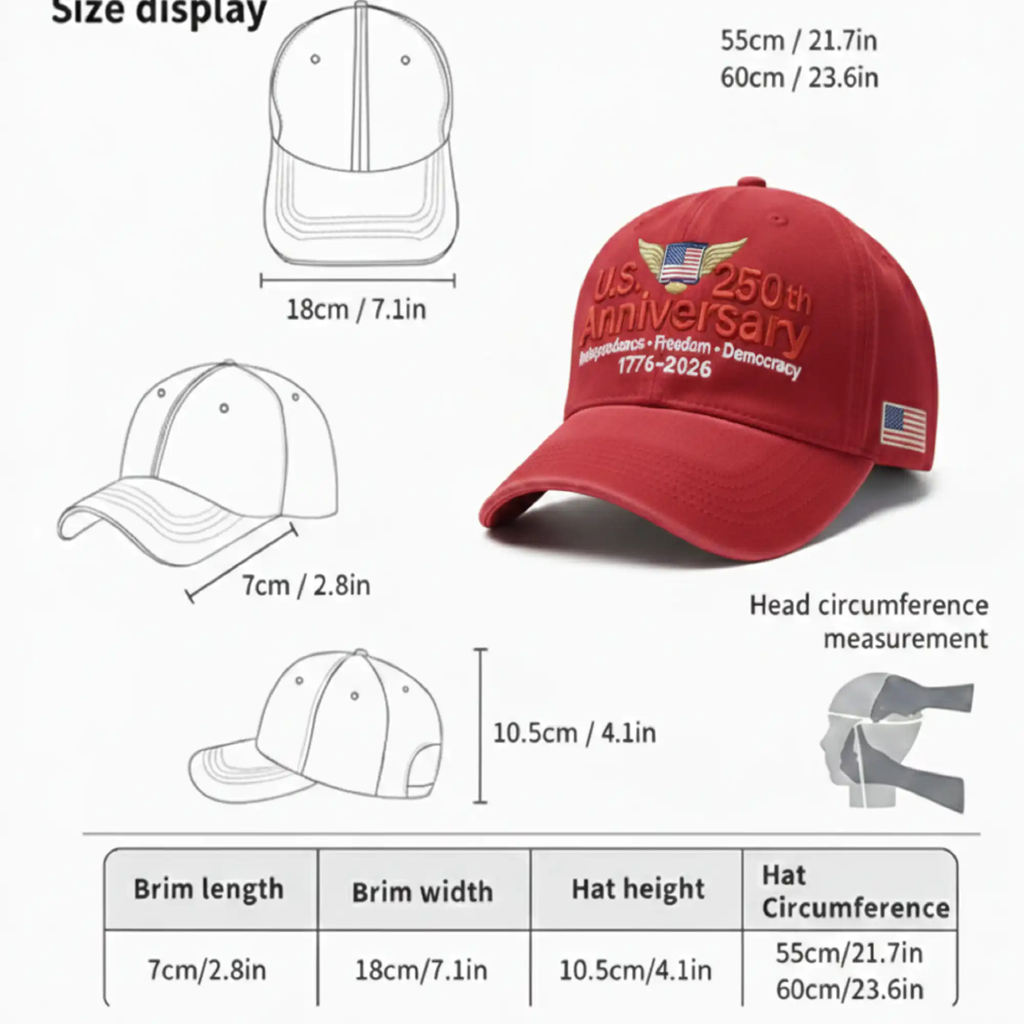 Honor 250 years of American history with the U.S. 250th Anniversary Baseball Cap, a patriotic commemorative hat designed to celebrate Independence, Freedom, and Democracy.