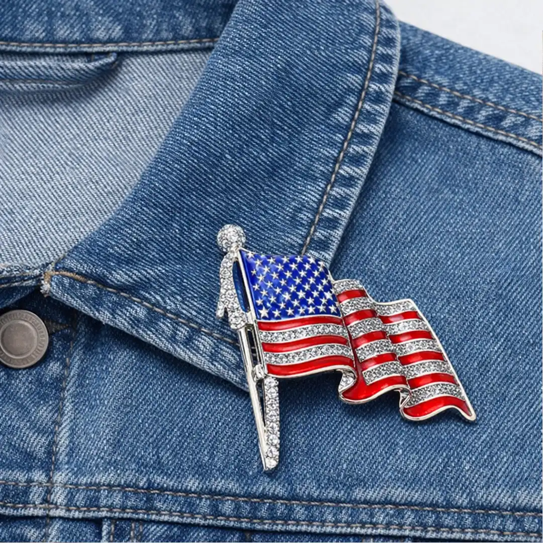 Featuring the iconic Stars and Stripes, this American flag brooch is enhanced with brilliant rhinestones set in a sleek silver-tone finish, offering a sophisticated and modern patriotic look. Whether worn for formal occasions or everyday style, it represents freedom, unity, and heritage.