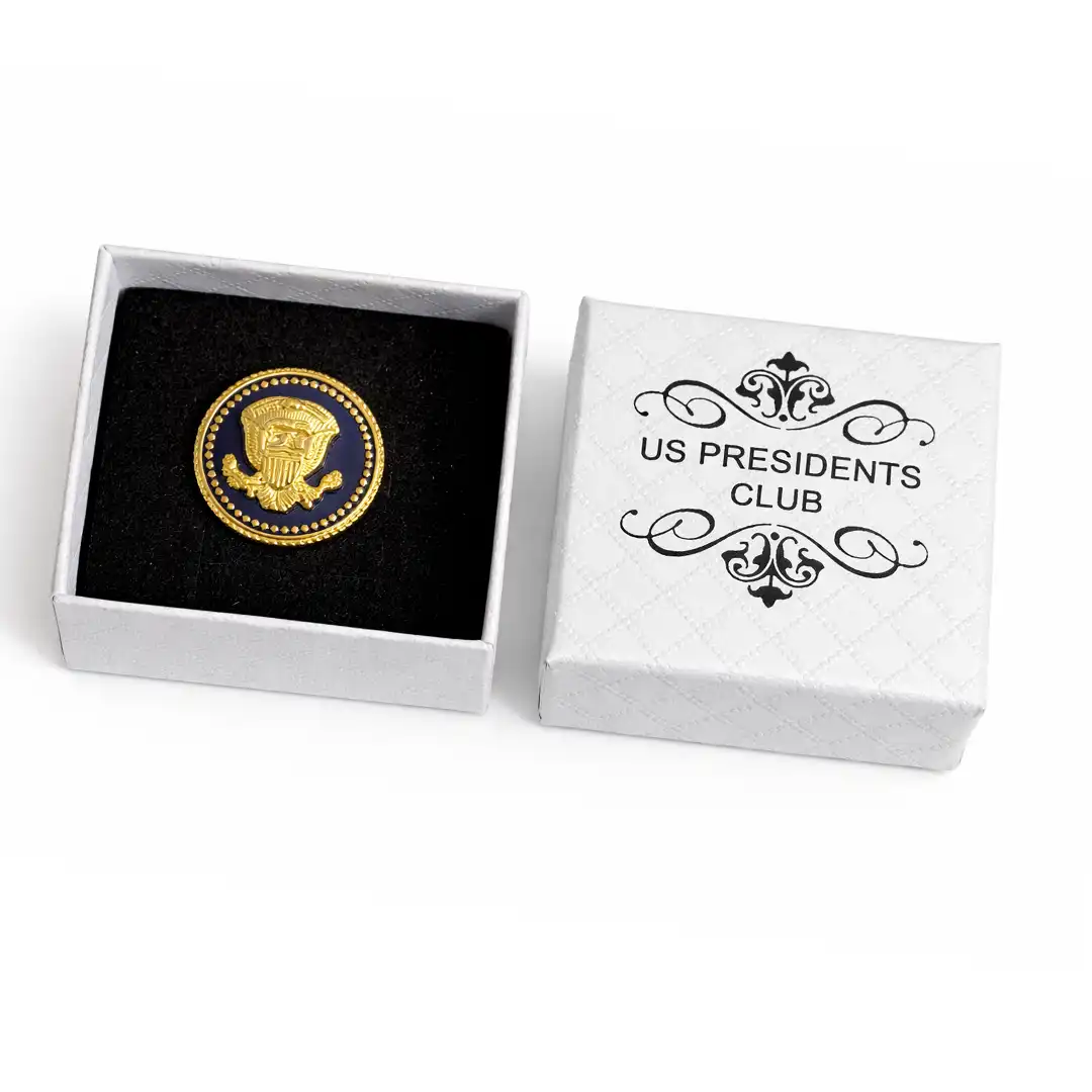 This presidential seal lapel pin balances luxury with meaning. Its durable construction ensures lasting wear, while the refined design makes it a standout accessory for collectors and style-conscious individuals alike.