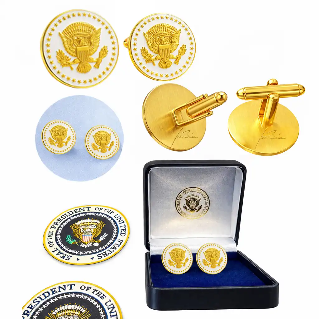 The Joe Biden Presidential Cufflinks - 24K Gold Plated are an elegant accessory designed for men who appreciate refined style, American history, and collectible craftsmanship. Inspired by President Joe Biden, the 46th President of the United States, these cufflinks blend timeless design with meaningful presidential symbolism.