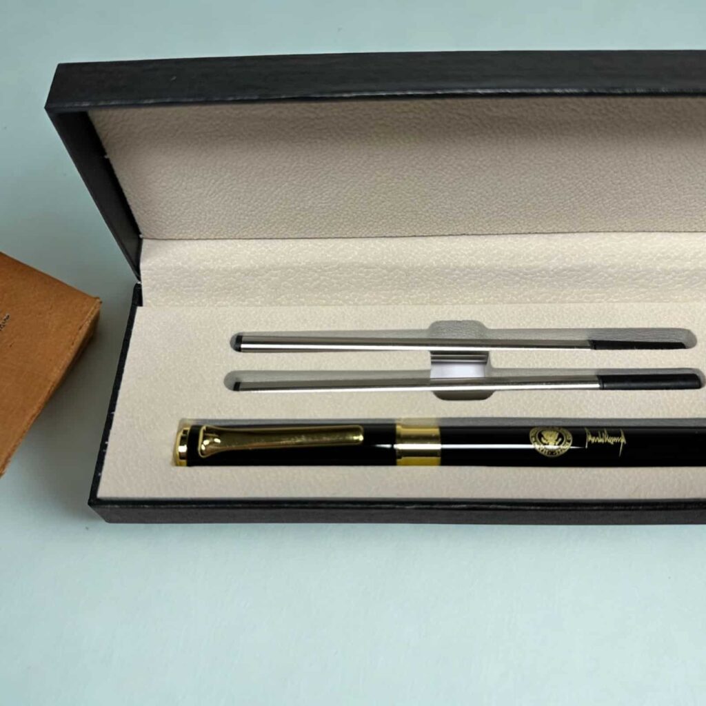 Make a sophisticated statement with this Presidential Pen_Set, elegantly engraved with Donald J. Trump’s signature. Crafted in a sleek high-gloss black lacquer finish with luxurious gold-tone accents, this set includes one premium ballpoint pen and two complimentary refills for lasting use. Housed in a padded presentation box, it’s designed for collectors, professionals, or anyone who appreciates refined writing instruments. With its signature detail and gift-ready packaging, this pen set is a perfect collectible keepsake or executive gift.