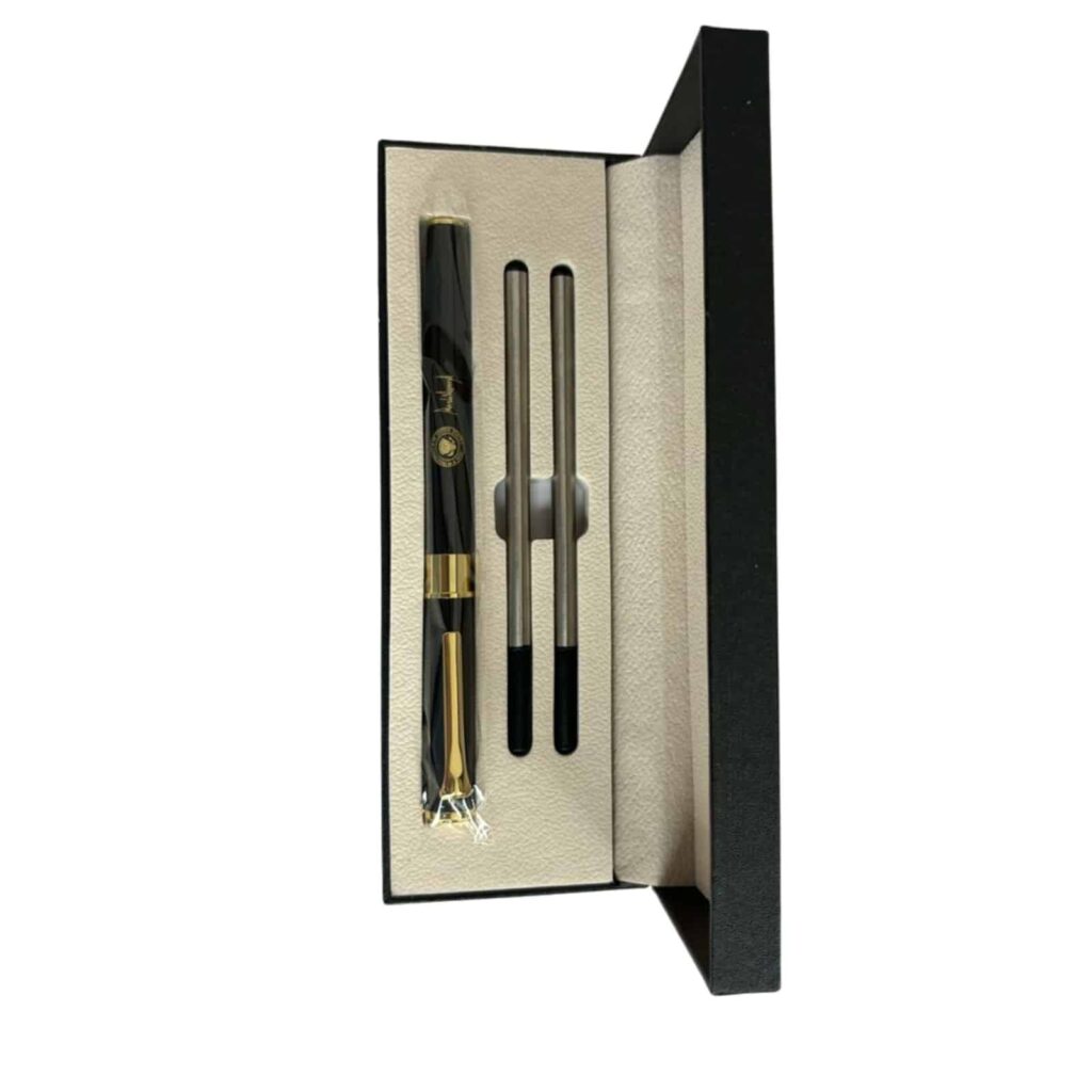 Make a sophisticated statement with this Presidential pen with two refill gift set. The elegant duo features high-gloss black lacquer bodies enhanced with lustrous gold-tone accents for an executive appearance. The ballpoint pen showcases a decorative reproduction of Donald J. Trump's signature, adding a distinctive collectible element. Both writing instruments come nestled in a compact presentation box with protective padding, measuring 7 inches long by 2 inches wide by 2 inches high. The sleek gift box design makes this set ready for immediate gifting or display. Perfect for collectors, professionals, or anyone who appreciates refined writing instruments, this set combines style with practicality. Comes with two refills in the this premium box as complementary.