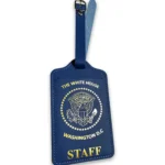 Travel in style with our Blue and Gold White House Staff luggage tag featuring the iconic Presidential Seal. This standout accessory will set your luggage apart and spark conversations wherever you go. Ideal for frequent flyers, travel enthusiasts, and political aficionados alike, it’s the perfect blend of practicality and prestige. Make baggage claim a breeze and showcase your unique taste with this elegant tag!. Luggage Tag Blue-Golden.