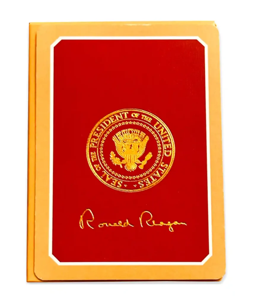 Elevate your next card game with a touch of presidential flair! Introducing our exclusive deck featuring President Ronald Reagan Signatures Cards, the 40th President of the United States. Each card is adorned with the prestigious “Seal of the President” and comes in an elegant gold and red design. Make every hand a winning hand with this unique, collectible set!