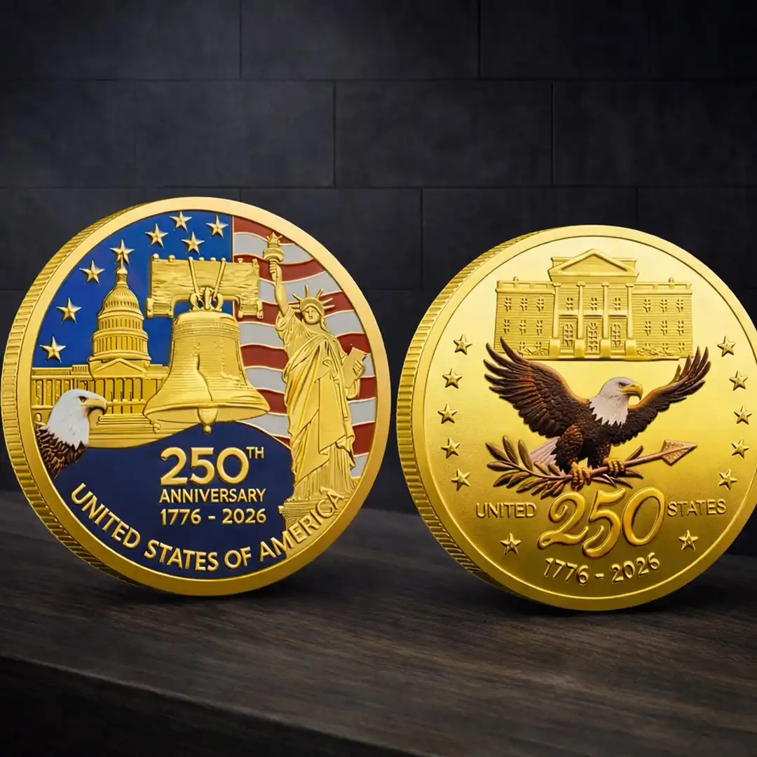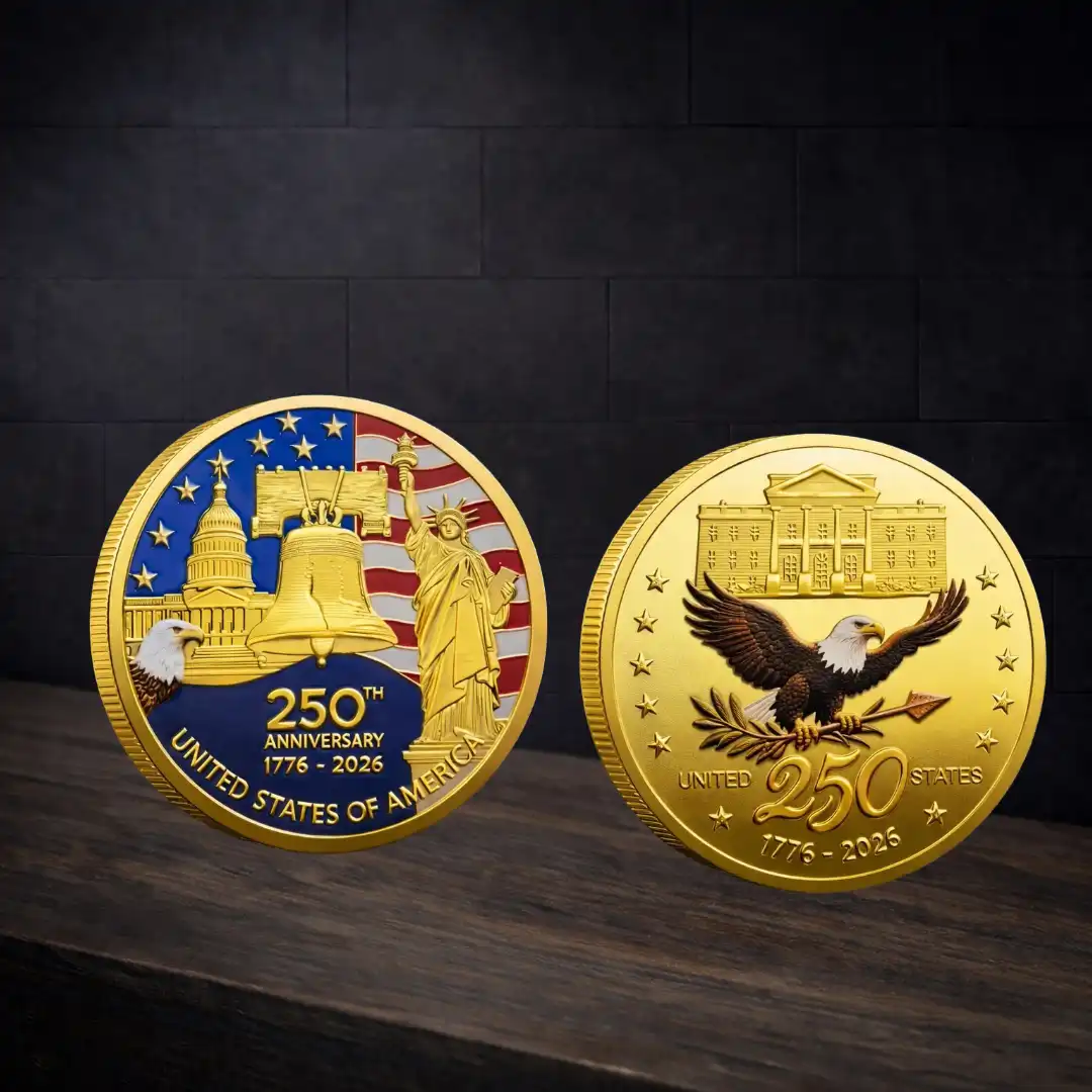 Crafted to reflect America’s leadership, resilience, and enduring values, this American 250th Anniversary Medal is ideal for patriots, veterans, collectors, civic organizations, history enthusiasts, and gift-givers. Its coin-style round design and gold-tone detailing give it the presence of a commemorative medal while remaining versatile as a wearable lapel pin.