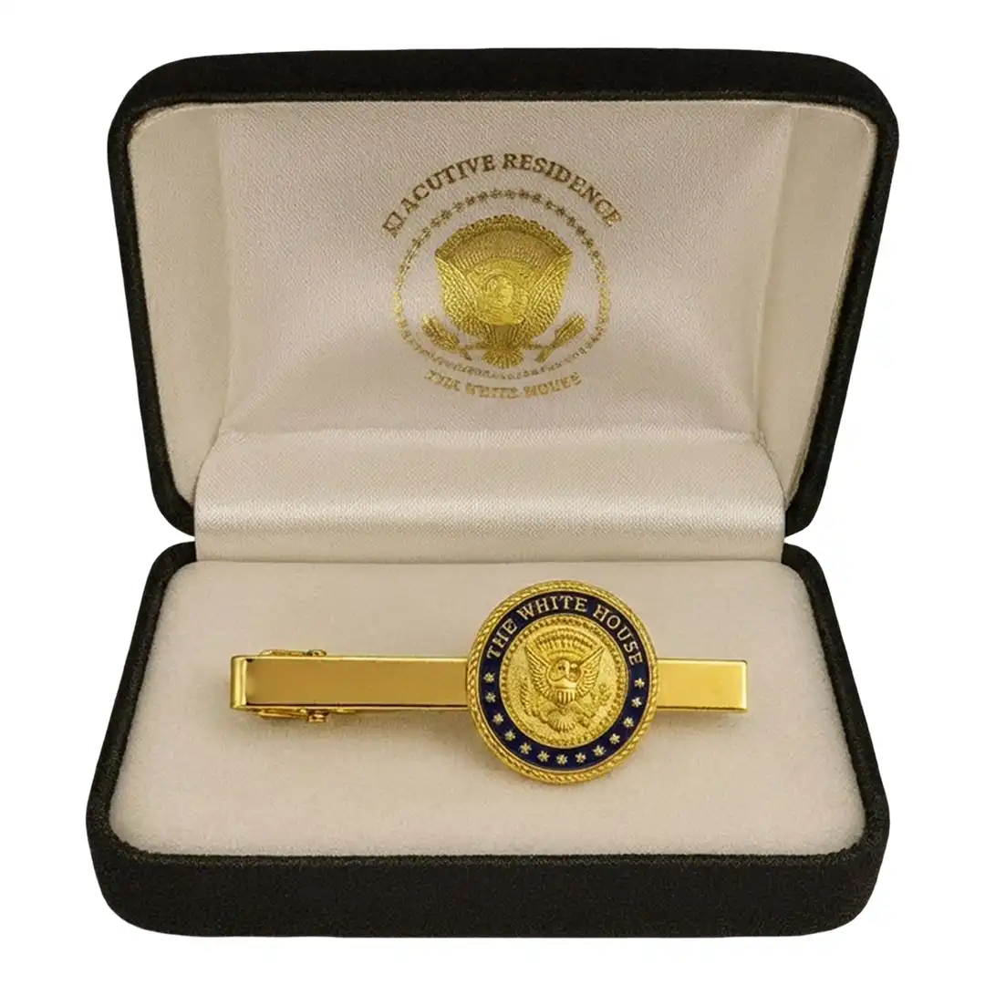 Featuring a polished gold-plated finish and a refined White House Seal Tie Clip design, this accessory adds a distinguished executive touch while securely holding your tie in place. Its classic styling makes it suitable for business meetings, formal events, ceremonies, and special occasions where attention to detail matters.