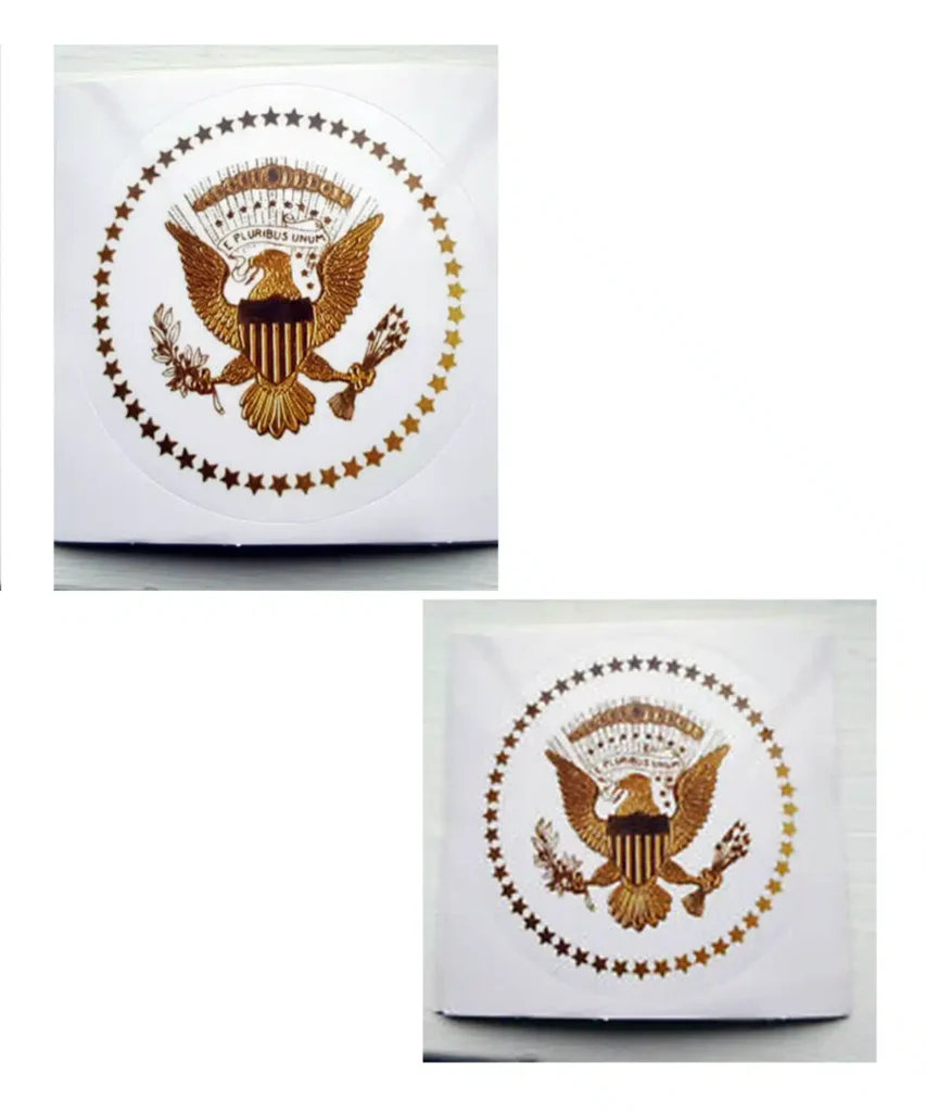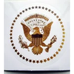 PRESIDENTIAL ROUND STICKER 3″ x 3″WITH IONIC PRESIDENTIAL EAGE SEAL WHITE AND GOLD ROUND STICKERS